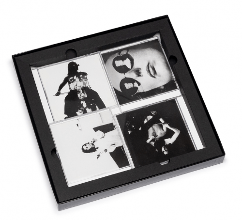 The four compact discs are housed in a large box together with a 154 page book with original documents, full colour photos and scores; a set of 16 full colour inserts reproducing the original posters and programs of the Annual Avant Garde Festival of New York. Second edition limited to 500 copies. Tracks 1-1 to 1-6 recorded in recital for Avant Garde Concert III at Judson Hall, New York on December 12, 1964. The concert was recorded by WBAI-FM. Tracks 2-1 to 2-8 recorded in recital in Aachen (Germany), Theatersaal on July 25, 1966. Track 2-9 is an unidentified recording. Track 2-10 recorded onto 12″ aluminium base lacquer disc 33 rpm micro groove. No recording dates or locations mentioned. Track 3-1, TV Cello Concert, recorded in Chicago, Museum of Contemporary Art in September 1982. Track 4-1 recorded at the Second Avantgarde Festival of New York on September 3, 1964. Track 4-2 is a Charlotte Moorman interview by Harvey Matusow recorded at BBC New York Studios, October 1969. Track 4-3 is a soundtrack of the videotape “Waiting for commercials”. No recording dates or locations mentioned.