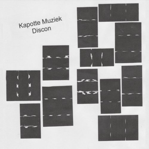 The 2017 concert in Trondheim, Norway mentioned above is particularly significant in the Kapotte Muziek trajectory, not only as it marked the beginning of a period of live inactivity. The concert took place at Klubb Kanin on its 20th anniversary, the group also having performed at the opening of the venue in 1997. To mark the event, the group were asked to do a cassette to document these two concerts. To fit both performances onto a single cassette, the 1997 recording was heavily cut up, leading to the current phase of Kapotte Muziek. One thing that has been a constant factor for Kapotte Muziek is the recycling of sound – in concert, by using junk from the streets, and in the studio, through the continuous re-use of sounds. In the first phase, Christian Nijs recorded sounds and instruments, and Frans de Waard created collages using these recordings. The intensive editing of the 1997 Trondheim recording led Frans to a natural conclusion, that live recordings from the group’s history could be used as source material for future releases. After three trial pieces for compilations, an entire album came to life. The result is ‘Discon’, a made-up word for ‘distilled from concerts’. Each of the 13 pieces is created by cutting, pasting, superimposing, and editing one concert. No other electronic treatments were used, no granular synthesis, etc. The cover is a collage from the booklet that came with Kapotte Muziek’s release, ‘Columbus, Ohio’, from 2004, which was created from a black and white painting Frans exchanged with an unknown painter for some merchandise at that concert.